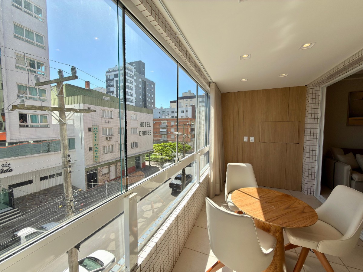APARTAMENTO PRÓXIMO AO CENTRO E AO MAR - Apartamento de frente mobiliado e decorado com 02 dormitórios, banheiro social, cozinha e lavanderia separada, living em 02 ambientes, sacada com churrasqueira e toda fechada em vidro temperado, peças bem distribuídas e muito bem iluminadas, box para carro com fácil acesso e depósito privativo. Edifício com ótimo padrão de acabamento, fachada revestida em plaquetas, água quente, gás central, hall de entrada decorado, elevador, zeladoria. Solicite mais informações com nossos corretores.