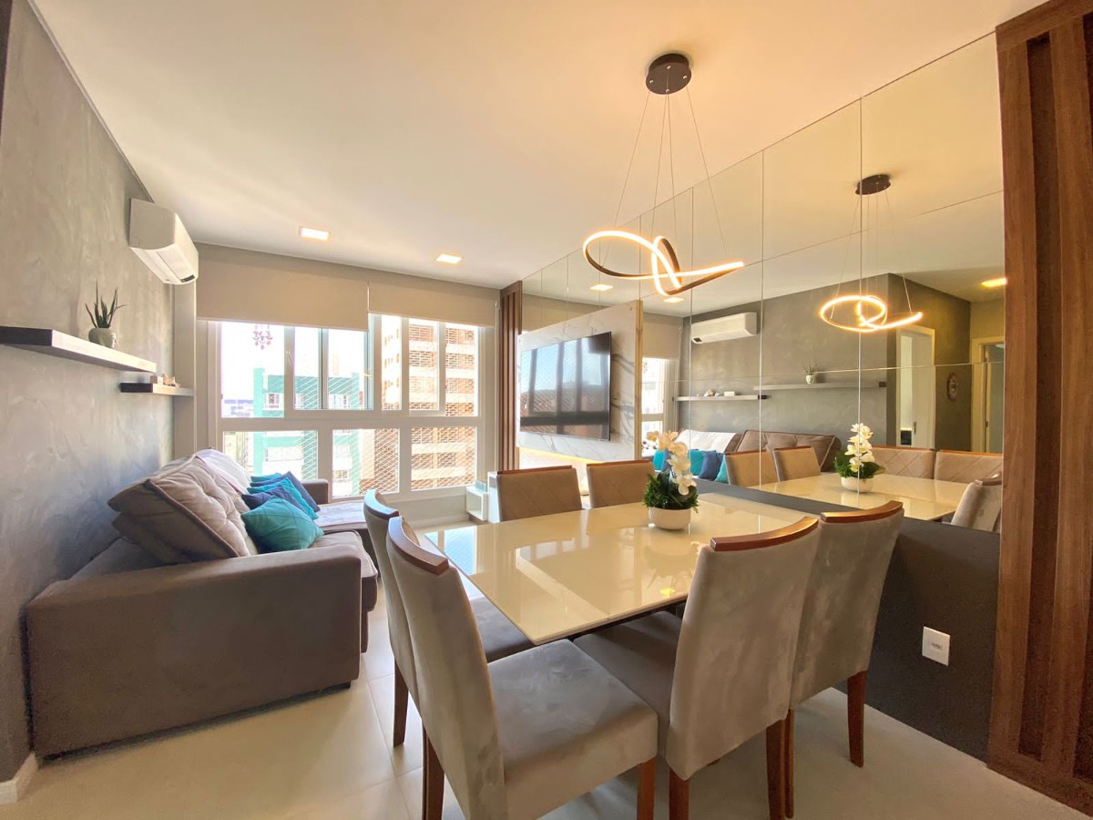 Novo e pronto para ser habitado! Localizado junto a Praça Flavio Boianovski a poucas quadras do mar. Apartamento distribuído por 2 dormitórios sendo uma suíte e banheiro social, lavanderia, cozinha americana, churrasqueira, living em 2 ambientes com sacada integrada, peças muito bem distribuídas, andar alto, orientação solar leste, finamente mobiliado, tudo novo e sob medida, excelente acabamento, box para carro. Edifício novo 100% revestido, água quente, gás central, tubulação para Ar Split, hidrômetro individual de água, zeladoria permanente, 2 elevadores, hall de entrada decorado, piscina aquecida, salão de festas, sala fitness. Confira está excelente oportunidade, solicite uma visita com um de nossos corretores.